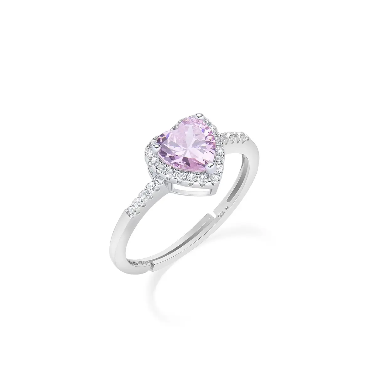 Anello in AG925 zircone rosa e zirconi bianchi – Rodio – Due misure adattabili: Misura 12/14 – Misura 16/18 – ⌀ 0,9 cm – Articolo corredato da shopper, scatola e garanzia
