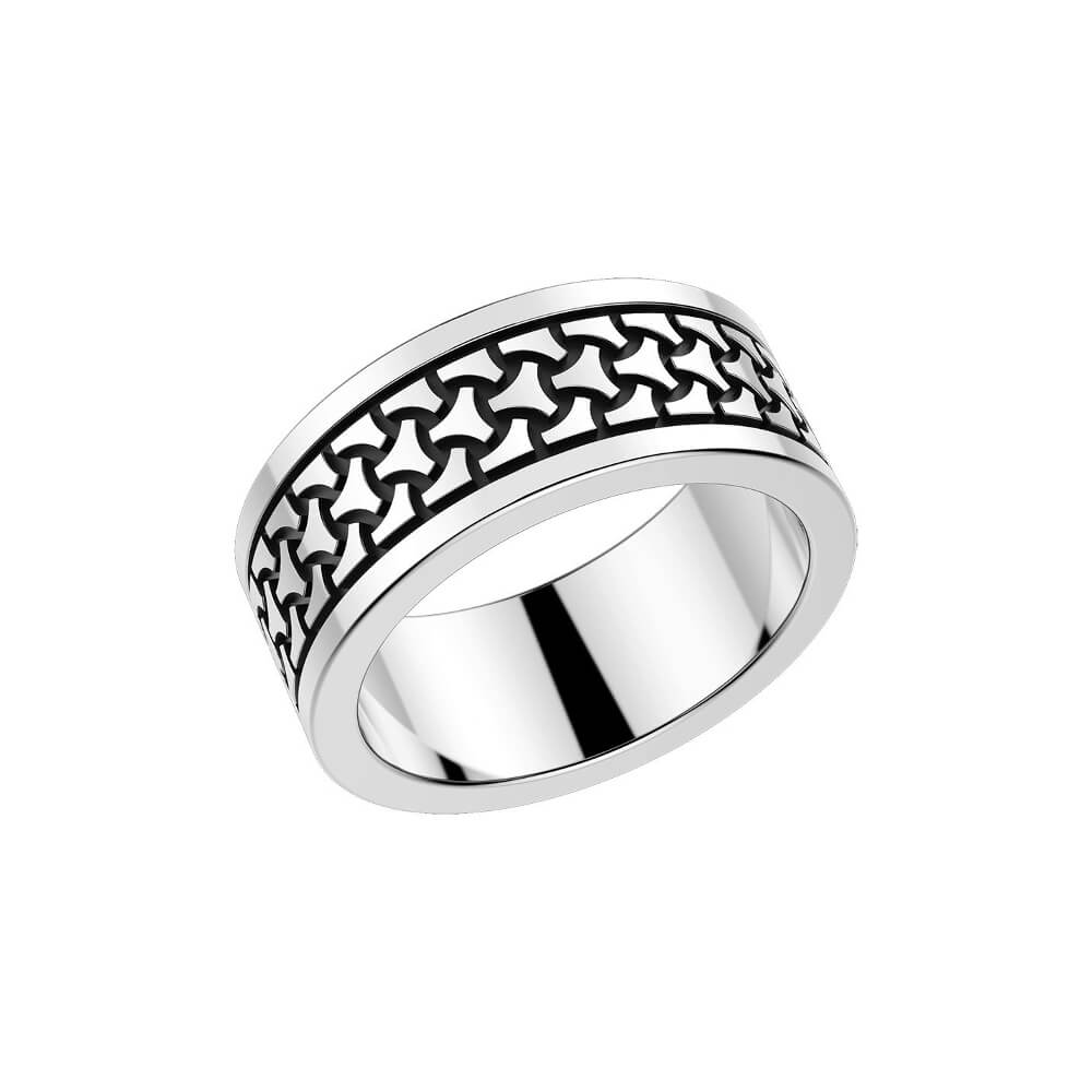 Anello da Uomo Zancan Collezione Cosmopolitan in argento 925 con motivi geometrici e dettagli in smalto nero. Un accessorio indispensabile per completare il tuo look.