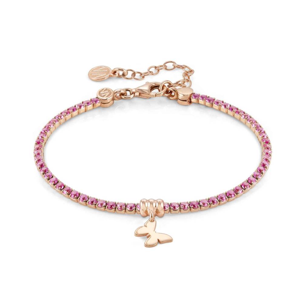 Bracciale Nomination in Argento 925 con Cubic Zirconia rosa e rivestimento superficiale in Oro rosa 916. Lunghezza regolabile da 16 cm a 20 cm.