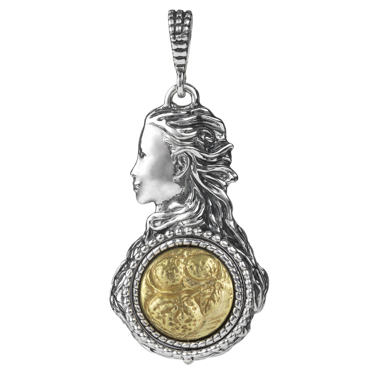 Ciondolo reverse in Argento con simbolo del mese di Gennaio e pietra dell’Inverno. Il volto di Demetra, dea greca artefice del corso delle stagioni dà forma al ciondolo in argento 925/000. Il ciondolo è dotato di un elemento girevole che presenta su un lato il simbolo del mese, gli agrumi in argento placcato Oro 24 kt, e sull’altro un cristallo sfaccettato rosso, il colore dell’Inverno. Tra tradizione e innovazione, simbolismo e colore, scegli tu quale verso dare al tuo look!