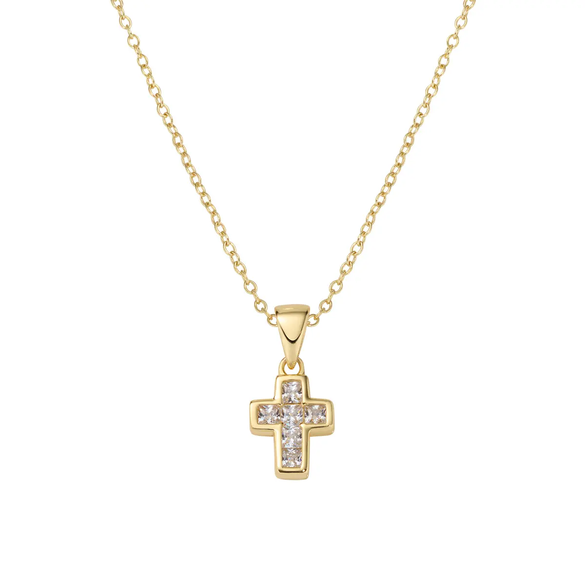 Collana in argento 925 dorato con mini croce e zirconi bianchi.