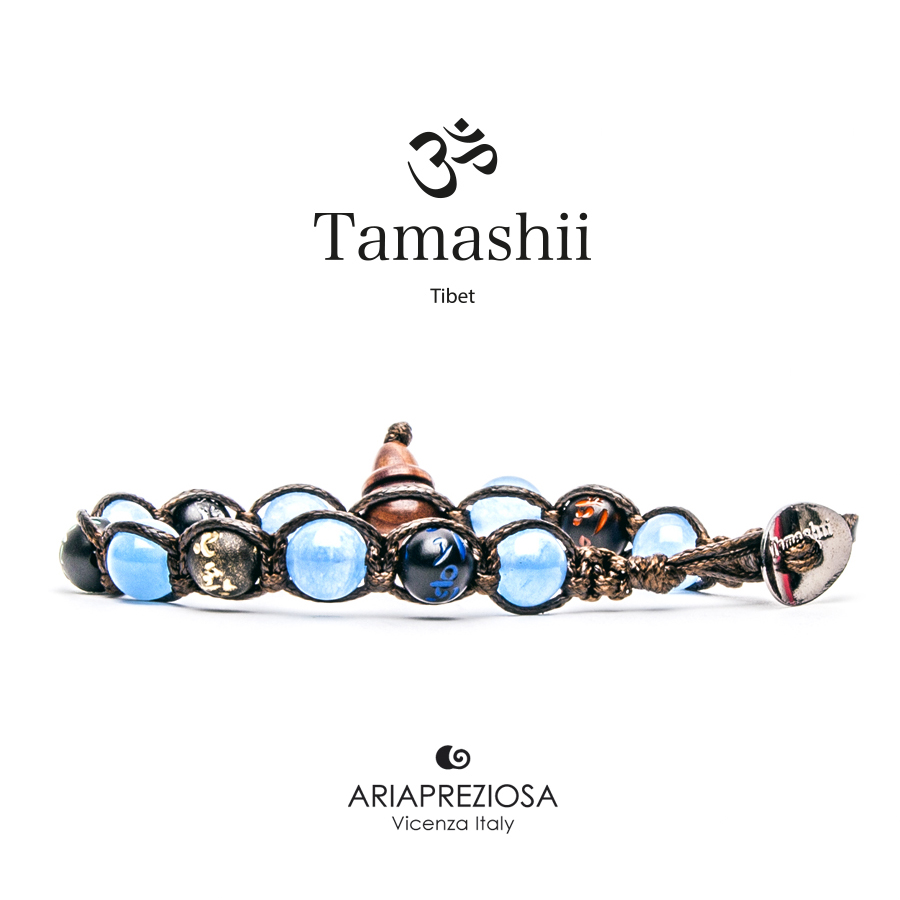 L’agata azzurra rappresenta il colore del cielo e dell’oceano, l’azzurro che per la cultura tibetana è il più importante dei colori e rappresenta la purezza, la saggezza e la pace. In questo caso particolare la tonalità di blu dona a questo Tamashii un aspetto ancora più divino ed elevato. Questo Tamashii® identifica il sacro. Bracciale originale tibetano “Tamashii® serie speciale Mantra” realizzato con pietre naturali AGATA OCEAN e legno orientale autentico con SIMBOLI MANTRA incisi a mano. Misura pietre 8mm e taglia unica (il bracciale è predisposto per adattarsi a qualsiasi diametro di polso). Ogni bracciale è spedito con relativa confezione originale e certificato di garanzia.